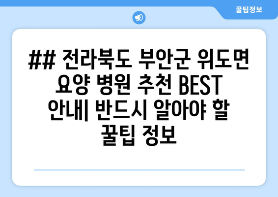 다음은 위도면 요양 병원 선택 시 고려해야 할 핵심 정보와 함께, 알아두면 도움이 되는 꿀팁들을 제공합니다.