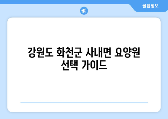 ✅ 화천군 사내면 요양원 선택, 뭘 봐야 할지 막막하신가요? 꿀팁 정보로 딱 맞는 요양원 찾아보세요!
