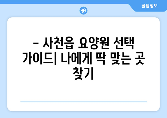 – 사천읍 요양원 선택 가이드| 나에게 딱 맞는 곳 찾기