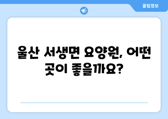 ✅ 울주군 서생면 요양원 선택 고민? 나에게 딱 맞는 요양원 찾는 꿀팁과 추천 정보를 확인하세요!