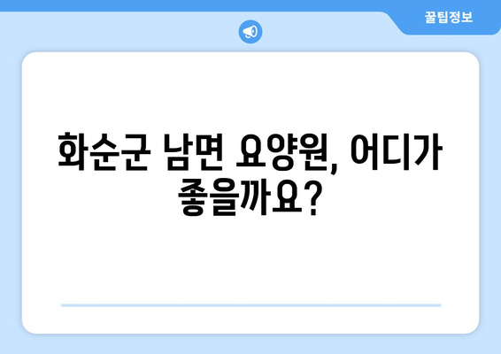 ✅ 화순군 남면 요양원 선택, 어려워하지 마세요! 나에게 딱 맞는 요양원 찾는 꿀팁을 지금 바로 확인해보세요.