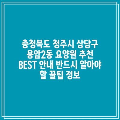 충청북도 청주시 상당구 용암2동 요양원 추천 BEST 안내: 반드시 알아야 할 꿀팁 정보 부모님이나 가족분의 요양 시설이 필요하신가요? 청주시 상당구 용암2동 지역에는 다양한 요양원들이 위치하고 … Read more